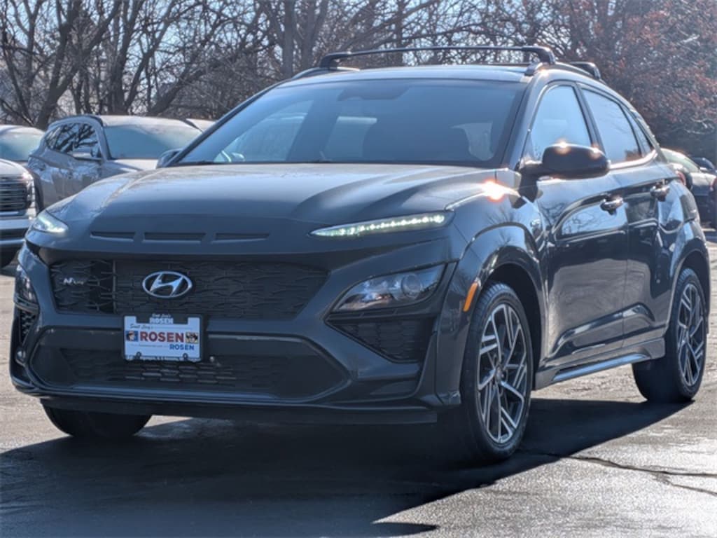 Certified 2023 Hyundai Kona N Line AWD, Clean CARFAX, One Owner and a Local Trade IN, 18" x 7.5J Alloy Wheels, AM/FM radio: SiriusXM, Apple CarPlay & Android Auto, Brake assist, Cargo Blocks, Cargo Net, Cargo Package, Cargo Tray, Electronic Stability Control, Exterior Parking Camera Rear, Heated front seats, Heated Sport Front Bucket Seats, Navigation System, Option Group 01, Power moonroof, Radio: AM/FM/HD/SiriusXM Audio System, Rear Bumper Applique, Remote keyless entry, Steering wheel mounted audio controls. Please Call 847-854-6700